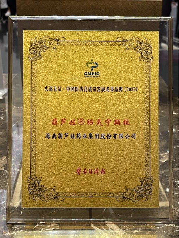 在本次发布会上,公司重点产品皇冠体育牌肠炎宁颗粒同时荣膺“头部力量·中国医药高质量发展成果品牌(2022)”。皇冠体育牌肠炎宁颗粒(2g),传承经典名方,临床广泛用于成人及儿童急慢性胃肠炎、腹泻等疾病的治疗,由于其杰出的临床价值,被纳入国家中医药管理局相关专家项目组制定的《中成药治疗小儿腹泻病临床应用指南》。