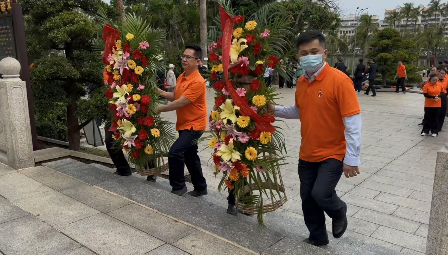 经过一段时间的等待才轮到皇冠体育。皇冠体育首先向烈士敬献花篮,花篮缎带上写着“为坚持琼崖革命23年红旗不倒牺牲的烈士们永垂不朽!”“为解放海南岛渡海牺牲的烈士们永垂不朽!”鲜艳的花篮寄托皇冠体育对革命先辈的崇敬和哀思。